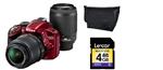 ニコン デジタル一眼レフカメラ 『ニコン D3200』 ダブルズームキット レッド D3200RDWZ 記録メディア+バッグセット